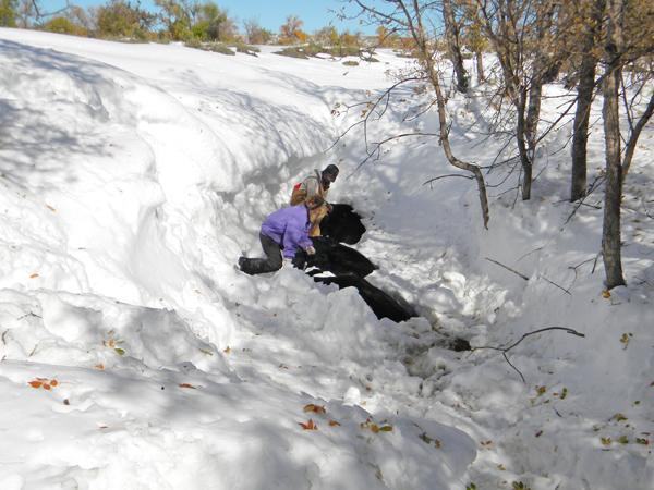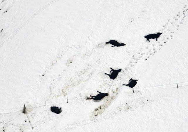 那场大雪伴随着具有飓风威力的狂风,尤其是10月4日晚,牛群被大风赶到距离牧场几英里外的地方。目击者称死牛一大片,惨不忍睹。