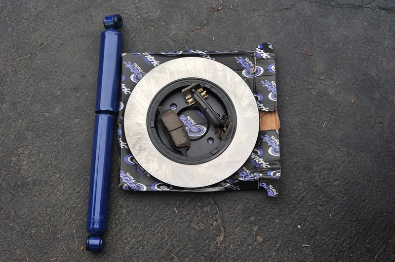 Chevy Uplander VAN已经开了六年了,虽然没有出十万公里,但一些件已经到了该换的地步,去年换了前刹车盘和刹车片,今年该换后刹车盘了,随便换刹车片。可是发现车过路坑时颠簸的厉害,想想可能是因为减震不太起作用了吧。提前在网上订的零件,长周末去美国玩两天都带回来了。
