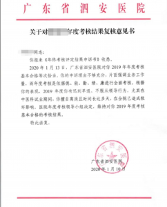 1月7日,医生被人事告知:年终考核被评定为“基本合格”。这是全院单独一档的评级。“这是一个严重的处分,不仅扣掉全部绩效和年终奖,当年不算工龄,明年没资格评聘(刚好要评聘中级),明年再来一个‘基本合格’就是可以辞退回家了。而且会写到档案里去,终身污点。”(这位医生是事业单位编制,因此,辞退有严格规程。)