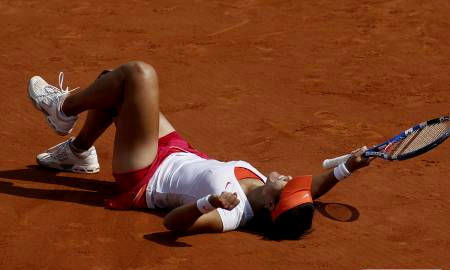 ⑦2011年,中国网球“一姐”李娜在6月4日进行的法国网球公开赛女单决赛中,以2比0战胜卫冕冠军、意大利选手斯齐亚沃尼,成功捧得冠军奖杯,创造了中国网球新历史。 |
