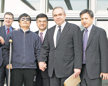 想在美使館逗留數年 駱家輝又說,陳光誠曾準備在美使館逗留「數年」,直至有滿意的協議,又指陳光誠曾對周三美中達成的協議感到滿意。 另外,外電周四引述一名美國高級官員稱,若陳光誠改變離開美國使館時的意願,轉而想要離開中國,美國已經準備好對他提供一切協助。該名美國官員透露,多名美國高級官員周四與中國官員一同和陳光誠對談。 對於美國是不是會協助陳光誠尋求庇護,該名官員表示,由於陳光誠目前的立場並不明確,因此拒絕評論。該名官員稱,美國會繼續與陳光誠對話,希望先弄清楚陳光誠是否已改變立場及了解他的意願,然後協助他達成心願。 公開向奧巴馬求助 陳光誠周三離開北京的美國大使館後,在醫院與妻子及子女團聚。他周四接受多家外國媒體訪問,一再表達希望離開中國。