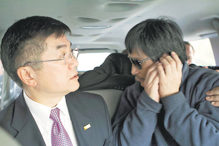 陳光誠的朋友、維權人士胡佳妻子曾金燕透過Twitter表示,一直堅持不離開中國的陳光誠,因為處境急劇變化,為保護妻兒,唯有選擇出國。他周三晚首次向曾金燕表示,希望全家離開。 另外,陳光誠在接受「路透社」和「法新社」訪問時,表示感到不安全,欲離開中國。他稱,儘管美國和中國達成協議,但協議無法保障他的人身安全,他擔心人身安全,又指最初堅持留在中國,但最近遇到很多事,他在和妻子袁偉靜談過之後已改變初衷,不欲留下,希望美國能幫助他和他的家人離開。他沒有解釋到底遇到何事。 |