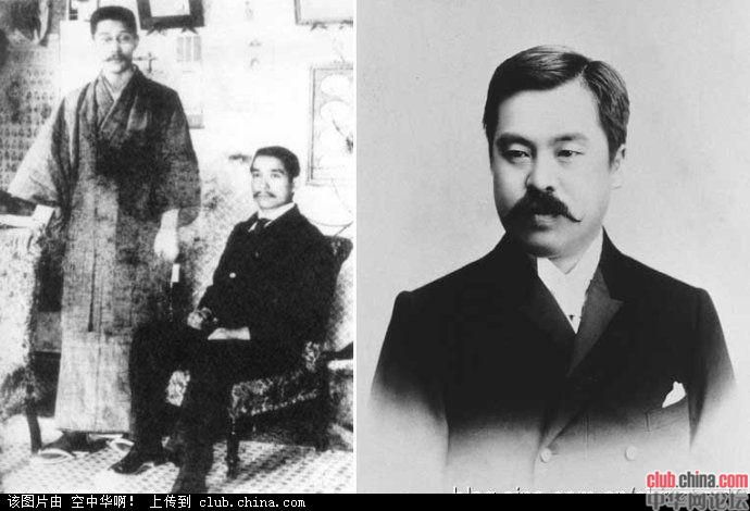 左图为1898年夏,孙中山在日本会见菲律宾独立军代表彭西,商洽代购武器。右图即为东亚同文会会长、日本贵族院议长近卫笃麿公爵。1895年孙中山逃亡日本后,第一件事情就是剪掉辫子,穿起西装,还学日本人蓄起了大胡子,此后我们看到的孙中山照片中,至死都蓄着胡子。