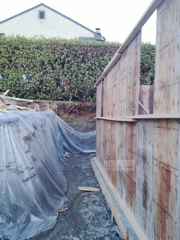 最后再发几张推倒的,待续 ![]() 看看右边那个台阶,想起了上大学时候学的"结构主义" : ![]() 坑挖好了,赶上下雨,成池塘了 ![]() 水抽出去了: ![]() 测绘师放过线了,下个星期就开始打混凝土地基了 ![]() 能看见一点房子的雏形了,激动: ![]() ![]() Footing浇上了,特意问了工程师,说分开浇灌混凝土是很常见的做法。 ![]() ![]() 走在未来的家: ![]() ![]() ![]() 讨论图纸:地下室要减掉一个窗户,因为结构工程师加了一根梁,没地方了。 ![]() 浇注水泥之前测量师测量模板的位置和高度,迎接政府的检查,确保地基是按照设计建造的: ![]() 后面圆柱形的是deck的柱子,高出地面只有3尺,其余都在地下 : ![]() ![]() 模版全部支好,开始给地基浇水泥: ![]() ![]() ![]() ![]() 水泥浇完以后还要用力地抹平: ![]() ![]() 地基墙打好了: ![]() 来个全景: ![]() 侧面有一排绿篱,征求邻居邻居意见,不让砍掉。挖坑和砍树的人说因为根部是连着的,要砍就得两侧全砍,要不就得全留。 ![]() 仅仅修剪了一下,保留绿篱不见得是坏事: ![]() 其实绿篱的根部很浅。这是挖坑后的土壤断面: ![]() 支撑露台的柱子,还做成圆形,其实大部分埋在地下,看不到的: ![]() 室外防水喷涂的标注: ![]() 窗子处的线脚: ![]() 室外楼梯的位置: ![]() 预埋螺栓,和上边将来的木结构连接: ![]() ![]() (未完待续) 经过半年的酝酿设计和筹备,老房子终于在前天推倒了。现在就把建房的过程记录在这里。 (续) |