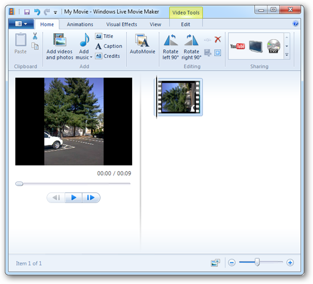 These are two rather easy ways to accomplish rotating your video. Unfortunately, Windows Live Movie Maker doesn’t give you a lot of options for output. If you want to output to a file, your only choice is WMV format or DVD. However, previous versions will also allow you to export to AVI. How-To Geek’s Install Windows Live Essentials In Windows 7 Article. |