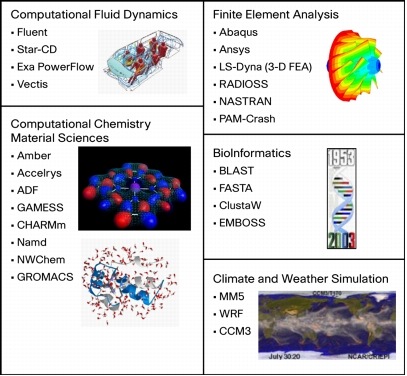 • Petroleum: Oil and gas exploration • Manufacturing: Automotive and aerospace • Biosciences • Financial: Data mining and market modeling • University and government research institutions and laboratories • Climate and weather simulation: National Oceanic and Atmospheric Administration (NOAA), Weather Channel, etc. Figure 4 shows some HPC applications that are used across a number of industries.