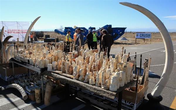 当地时间2013年11月14日,美国科默斯城,美国渔业与野生动物保护协会公开销毁一批重大6吨的象牙及象牙制品。这批象牙及工艺品取自非洲与亚洲多达2000只大象,由美国上个世界80年代后期逐渐收缴而来;当天这批象牙被一台碎石机公开销毁。 |