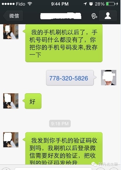 过程是,A发问:我发到你手机的验证码收到吗?我刷机以后登录微信需要好友验证,把收到的验证码发给我。B,不假思索把验证码发过去了,结果过两天,有人用他的微信号,以他的名义,向他的朋友发出借钱的请求,搞得他的很多朋友困惑不解。
