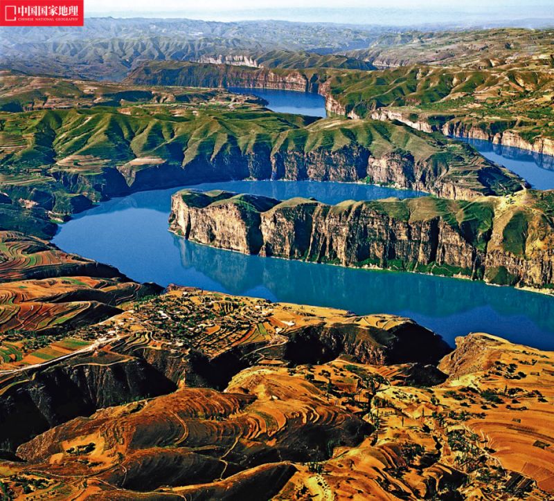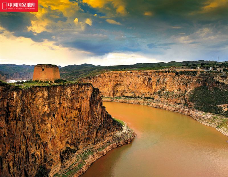 在内蒙古的清水河县喇嘛湾镇到山西河曲县梁家碛村这一段长达80公里的长峡里,因为落差巨大,浪涛汹涌,黄河水呈现一种常见的金黄,但是到了老牛湾古堡附近,因为受到它下游的拦河大坝影响,水流变缓、泥沙沉淀,黄河却显现出少有的青绿色。