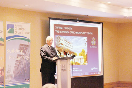 中資商城「溫哥華國際廣場」設計圖。(列市府提供) 【明報專訊】列治文市長馬保定(Malcolm Brodie)昨日公布一項耗資40億元的大規模開發計劃,預計在2041年前為列治文打造一個全新現代化市中心,屆時市中心人口密度將會翻倍,列市人口將增加四成。 這40億元開發計劃主要使用外來資金,內容包括一個史無前例的中資大型商城,以及16間高級酒店和大量高層柏文。列治文還會打造一個新的捷運站,更罕見引入亞洲概念,將建造車站的費用轉嫁至開發商及住戶身上。 馬保定昨日在列治文商會的午餐會上表示,列治文的人口總數將在2041年突破28萬人(目前約20萬人),市中心人口密度將會由現在的每平方公里5500人,翻倍至每平方公里1.1萬人。他以每平方公里2.2萬人的溫哥華市中心西端,以及每平方公里4.5萬人的香港九龍為例,稱列治文市中心有必要朝高密度住宅的方向發展。 馬保定隨即宣布一系列的開發計劃,為列治文打造一個全新的市中心,其中包括在河石賭場(River Rock)以西打造一個大型商城(見另稿)。為期30年開發計劃的總金額高達40億元,他透露經費來源主要是外國投資,其中更不乏中國資金。 兩年發出總值達12億元建築牌照 列治文新市中心將包含1.2萬個全新的住宅單位、16間全新酒店共提供2500個房間、總面積達150萬平方呎的辦公單位,以及總面積達240萬平方呎的零售商戶單位。過去兩年間,列治文市府已經發出總值達12億元的建築牌照。 馬保定強調,列治文並無意與溫哥華市中心以及素里新市中心競爭,而是希望打造一個以功能性為主的市中心。他以16間包括五星級在內的新酒店為例,強調列治文因為鄰近溫哥華國際機場,這些新酒店將可藉由地利,吸引大批亞太地區為主的遊客入住。 新的列市中心將會沿覑加拿大線捷運分割為七大區塊,包括橋港村(Bridgeport Village)、Capstan村、Aberdeen村、Lansdowne村、Oval村、Brighouse村,以及McLennan北區等。其中列市府更打算在Capstan村社區中,建造一個全新的加拿大線捷運站(見另稿)。 這40億元的建設計劃有部分已開始進行,例如Oval快速滑冰場旁的River Green開發計劃,目前正緊鑼密鼓進入第二期工程。市府還會在菲沙河畔打造一個16.2公頃的大公園,並將四周的鐵路改變為一個四線道環狀路。 其他開發案方面,Brighouse捷運站旁將會打造兩個全新的16層柏文,並設置一個新的巴士總站。西三一大學(Trinity Western University)列治文分校的工程,目前也順利進行中。